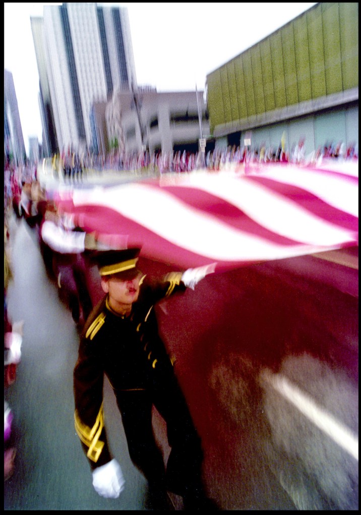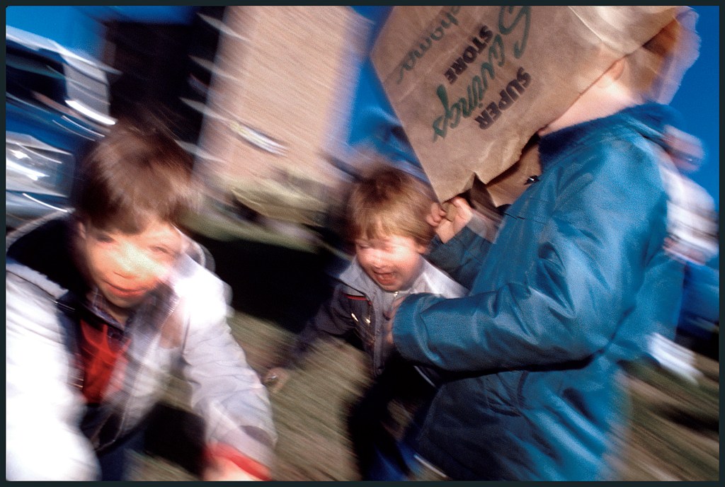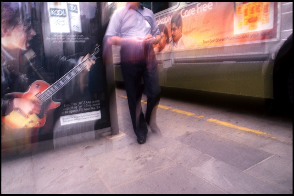 A friend who looked at the Cibachrome exhibit asked me if I had any of my old “drag shutter” shots available to post. I thanked him for the suggestion for I knew that it would be fun to locate and scan some of these slides . “Drag Shutter” refers to the use of both flash and slow shutter speeds when making an exposure. This technique produces a combination image: partly sharp from the bright and and rapid flash exposure and partially blurred from the motion of the camera and or subject. Backgrounds that are normally rendered dark and void of detail when using flash traditionally are partially revealed by the ambient light during the slow exposure time. Using this technique in street photography with its many variables may prove to be unpredictable. However, don’t let initial mistakes discourage you for if you persist you will get some images that are unique and highly satisfying.